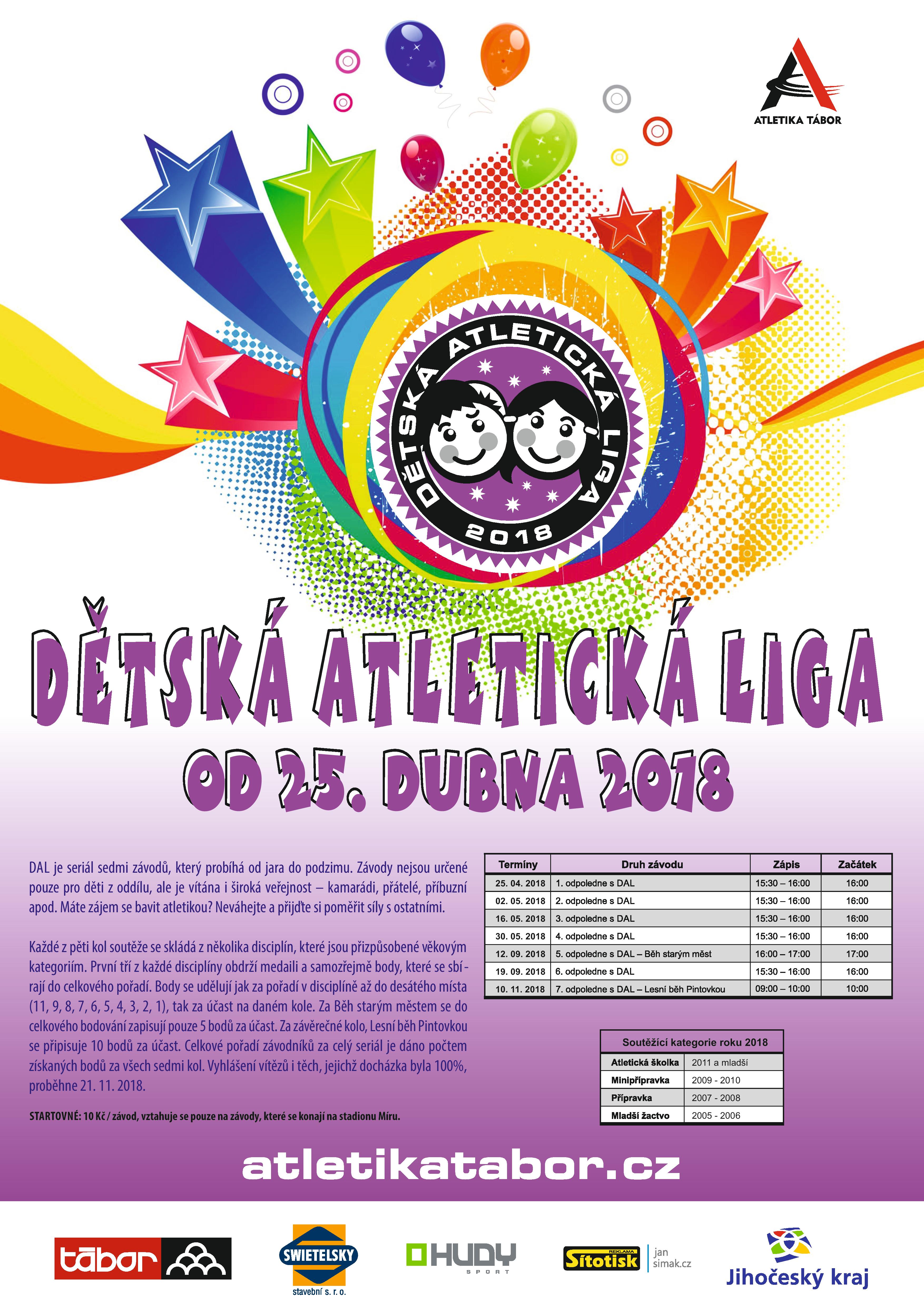 i v orce 2019 budeme pořídat Dětskou atletickou ligu (DAL). Propizice a pravidla si můžete stáhnout níže. Vedoucí projektu je Šárka Chládková.